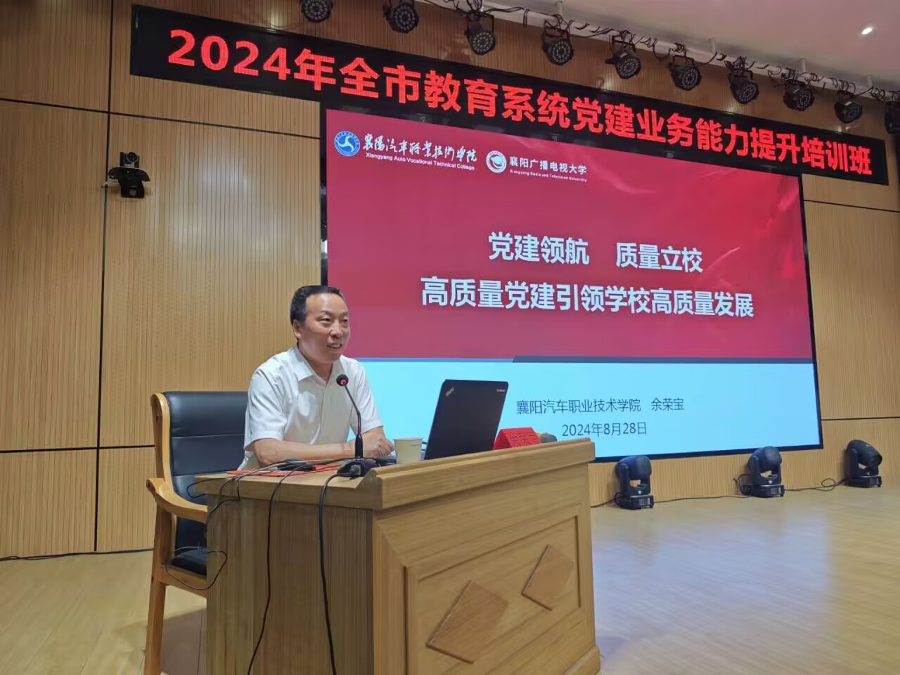 8月28日,学校党委书记余荣宝应邀为2024年襄阳市教育系统党建业务能力提升培训班学员授课。本次培训班由中共襄阳市委教育工作委员会主办,襄阳职业技术学院承办。