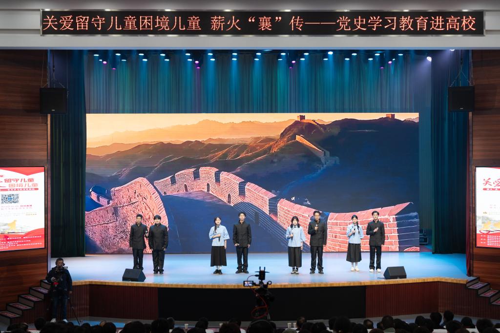 歌舞表演《大梦想家》拉开了此次活动的序幕,王鹏程为活动致辞,他强调,此次活动是襄阳市常态化、长效化推进党史学习教育 “七进” 活动的重要举措,也是关爱留守儿童、困境儿童的有益探索。党史中众多少年英雄的故事激励着当代少年儿童,新时代下学校、教师、高校学生及社会各界应携手努力,发挥党史教育优势,为留守儿童提供全面服务,共同营造良好成长环境,传承红色基因,助力民族复兴。