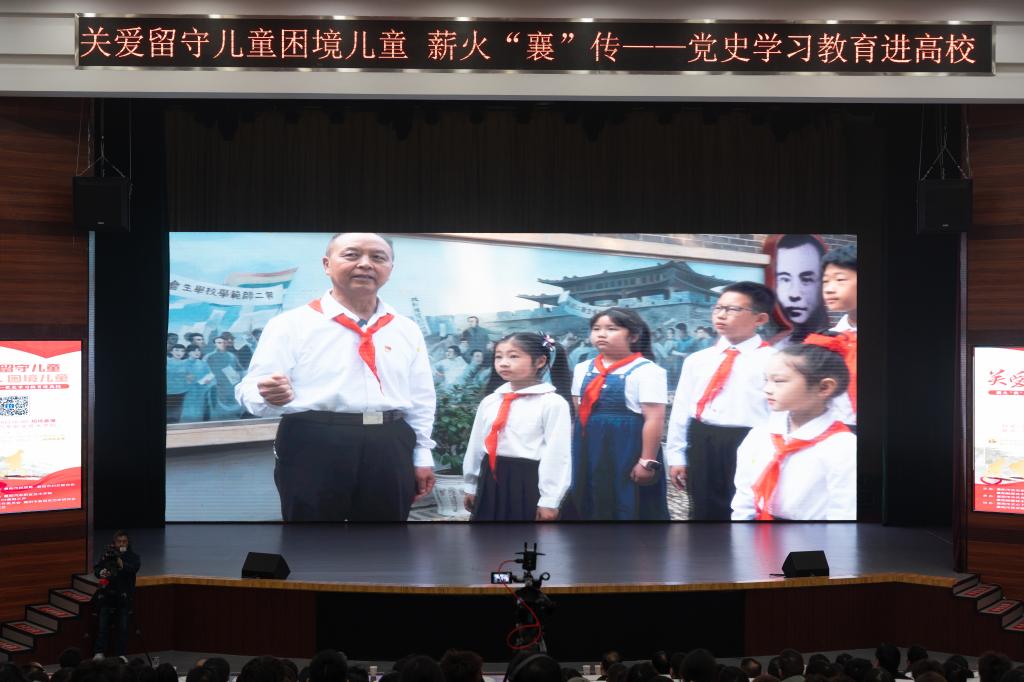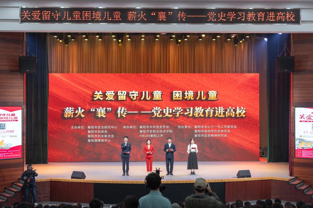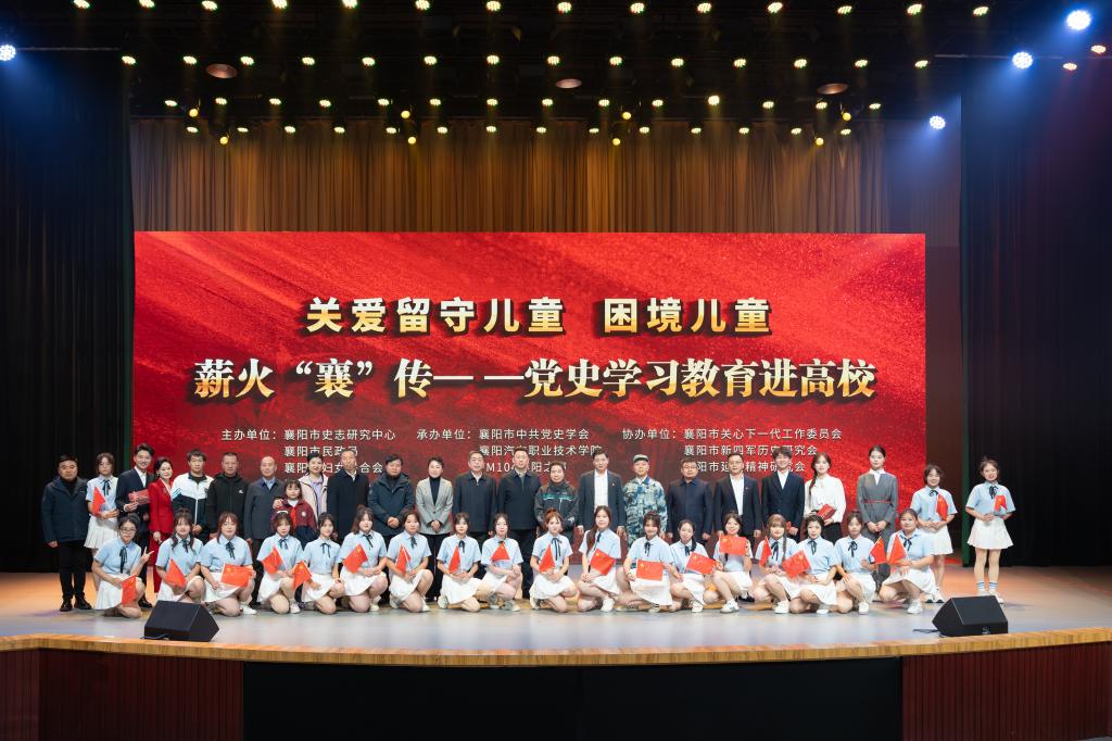 为进一步巩固党史学习教育成果,培养担当民族复兴大任的时代新人,关注基层特殊儿童,守护留守儿童心灵。11月18日下午,襄阳市薪火“襄”传——党史学习教育活动在襄阳汽车职业技术学院举行。襄阳市人民政府副秘书长王鹏程,襄阳市民政局党组书记、局长曹黎,襄阳市妇联党组书记、主席汪艺琼,襄阳融媒体中心党委副书记、总编辑张成武,襄阳市史志研究中心主任李晓波,襄阳市委宣传部副部长陈勇,襄阳市委直属机关工委副书记何柳,襄阳市关工委副主任陈学政,襄阳市委组织部机关妇委会主任杨利丽,襄阳市教育局四级调研员王怀波,襄阳市儿童福利院院长廖红娅,襄阳汽车职业技术学院党委书记余荣宝,党委副书记、校长程传红,以及在家校领导参加了本次活动。